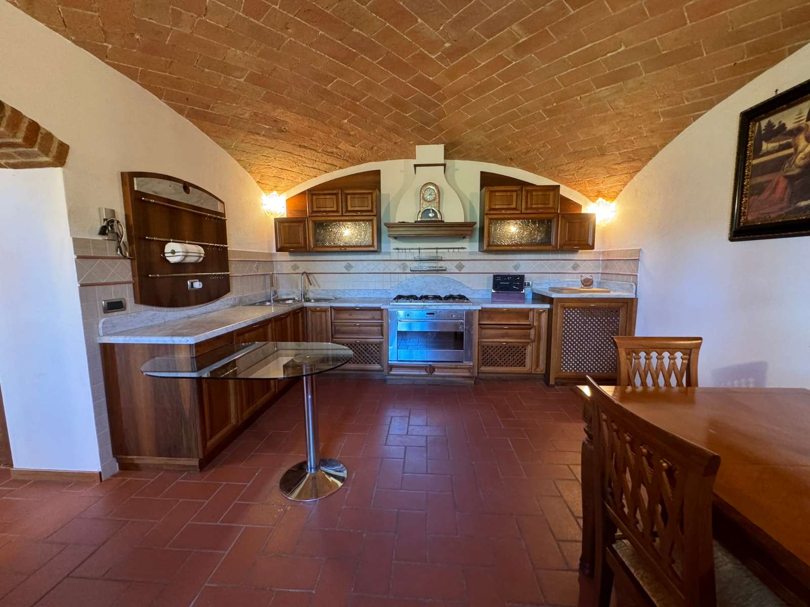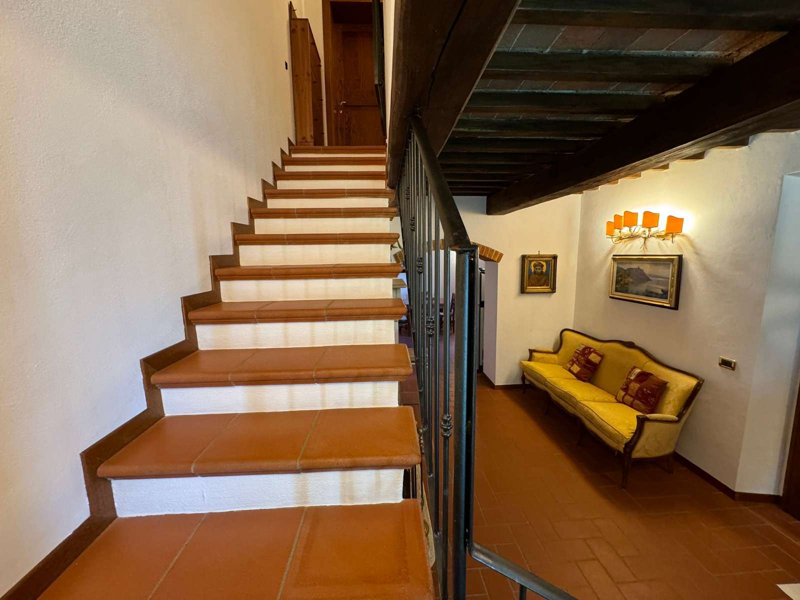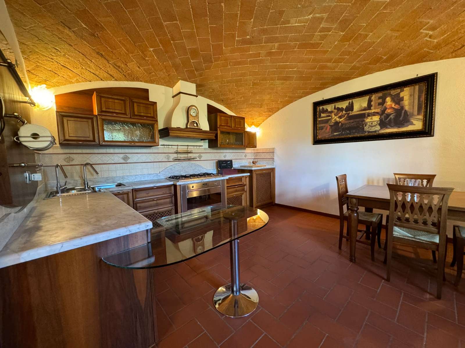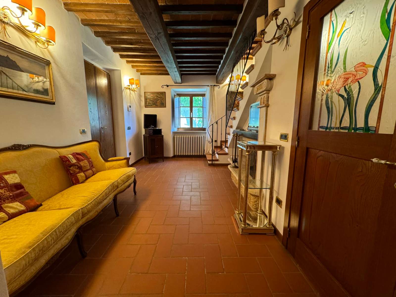 Al suo interno è composta al piano terra da un soggiorno con camino, una cucina abitabile impreziosita da caratteristiche volte in pietra, e un bagno di servizio; al piano primo ci sono invece da due camere da letto ed il secondo bagno con vasca idromassaggio.