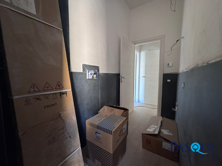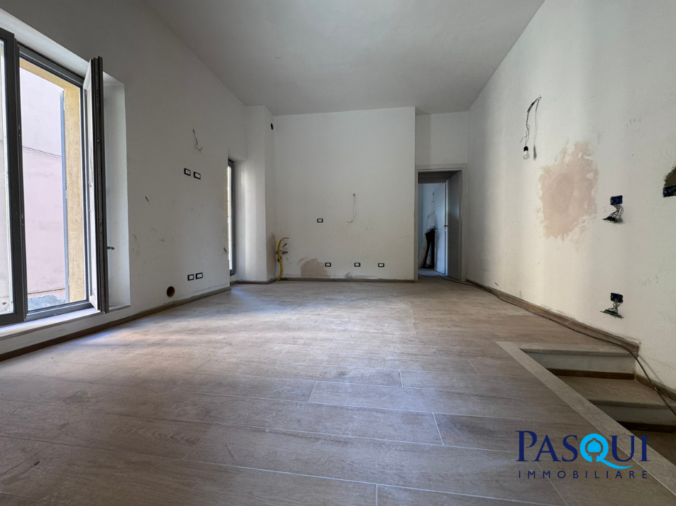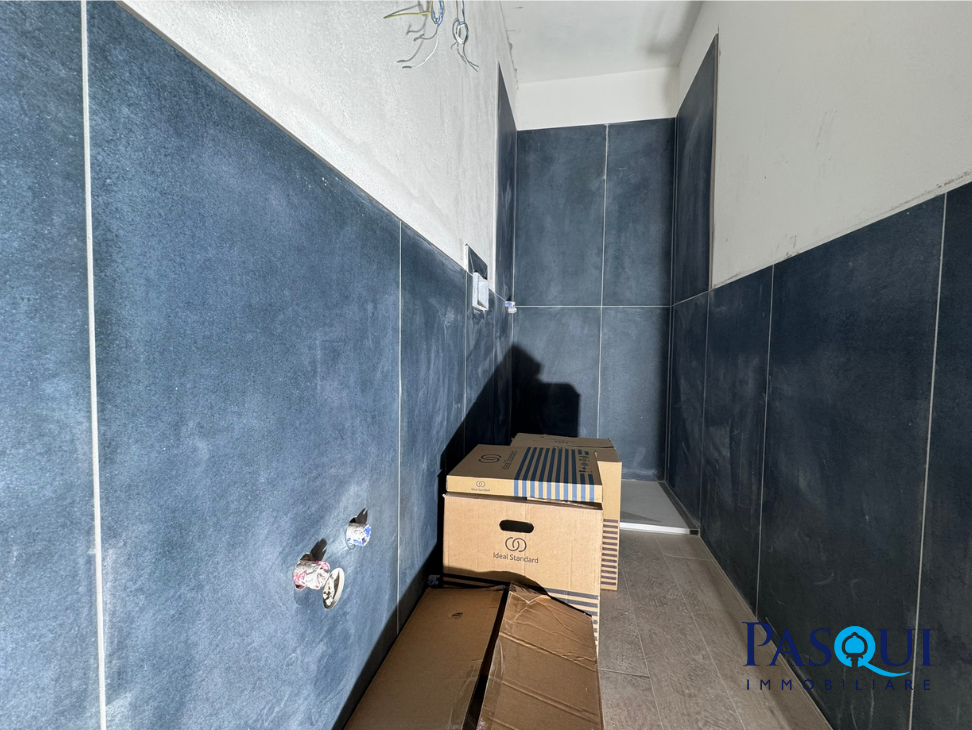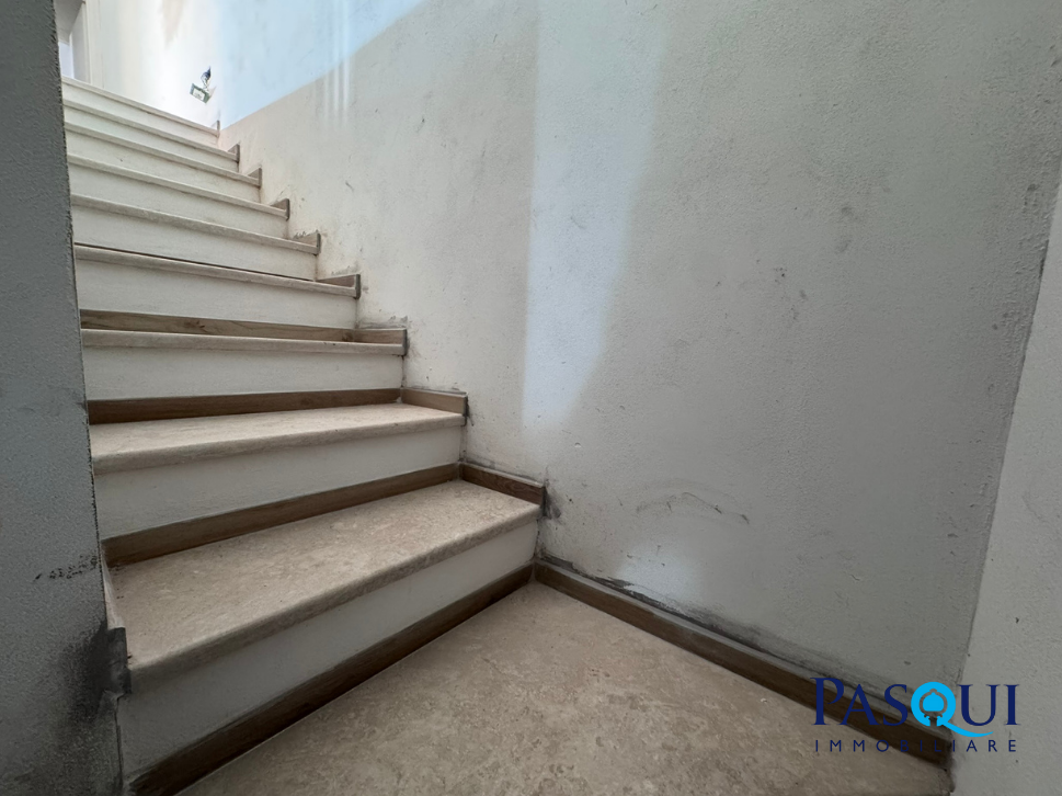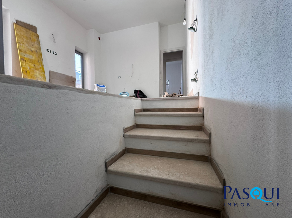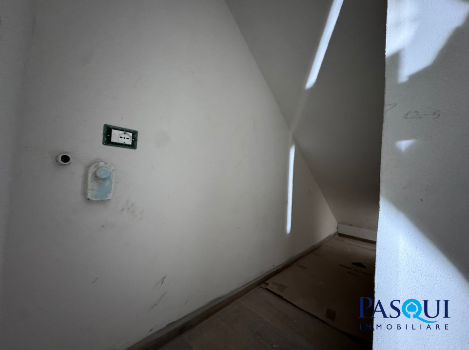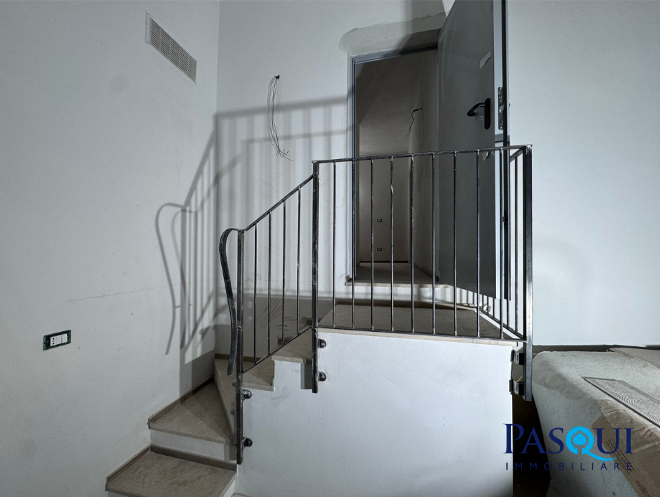 Così composto: zona soggiorno cucina di 20 mq ca., un bagno ed una camera di 14 mq., al piano sotto troviamo una camera, un ripostiglio sottoscala con zona lavanderia ed un secondo bagno.