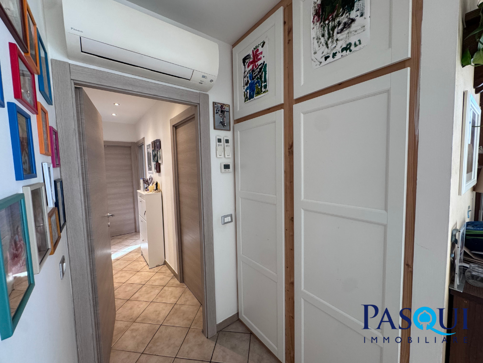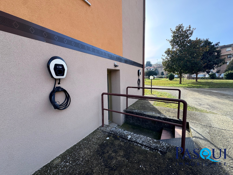 L’appartamento è inserito in un contesto curato, con area verde condominiale e zona parcheggi con colonnine per la ricarica di auto elettriche.