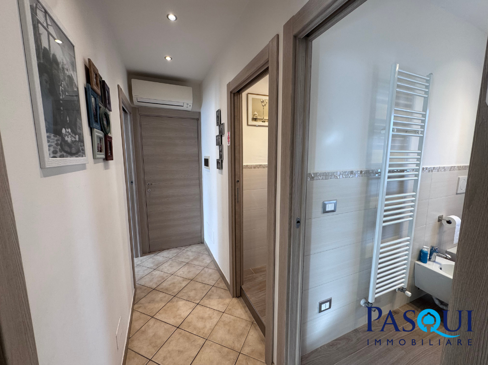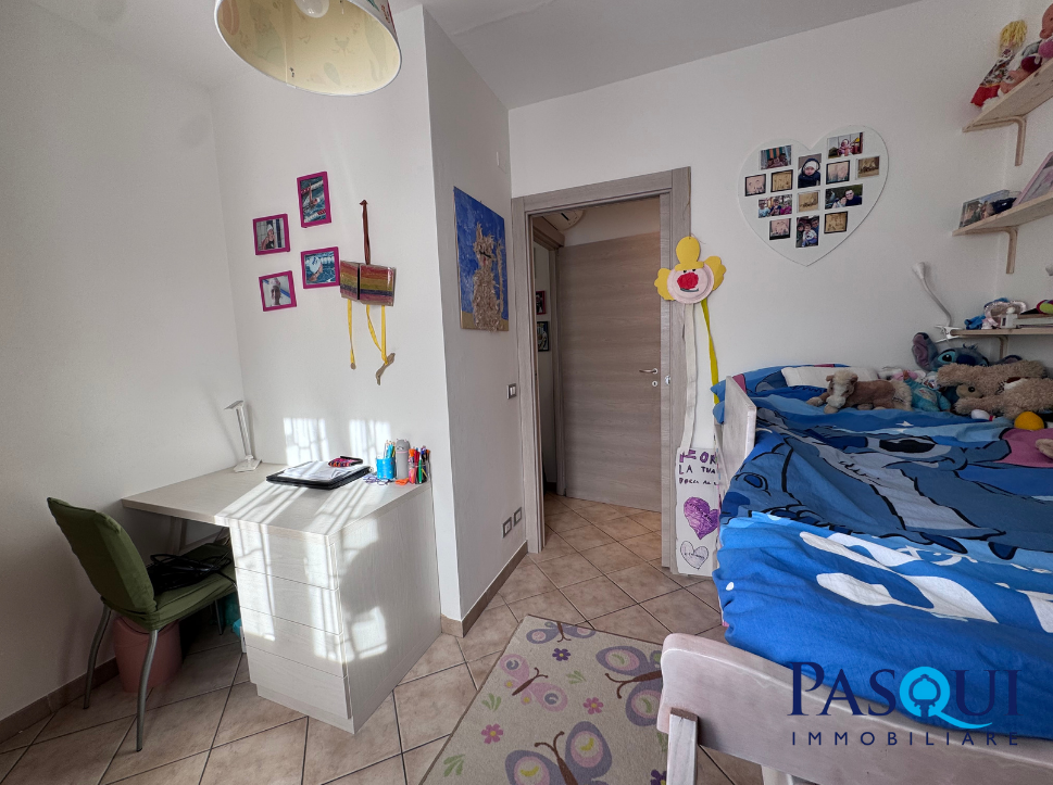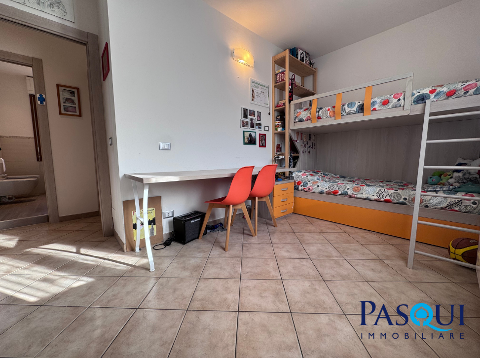 La zona notte è ben distribuita e comprende tre camere da letto e due bagni finestrati, ideali per famiglie in cerca di spazi comodi e funzionali.