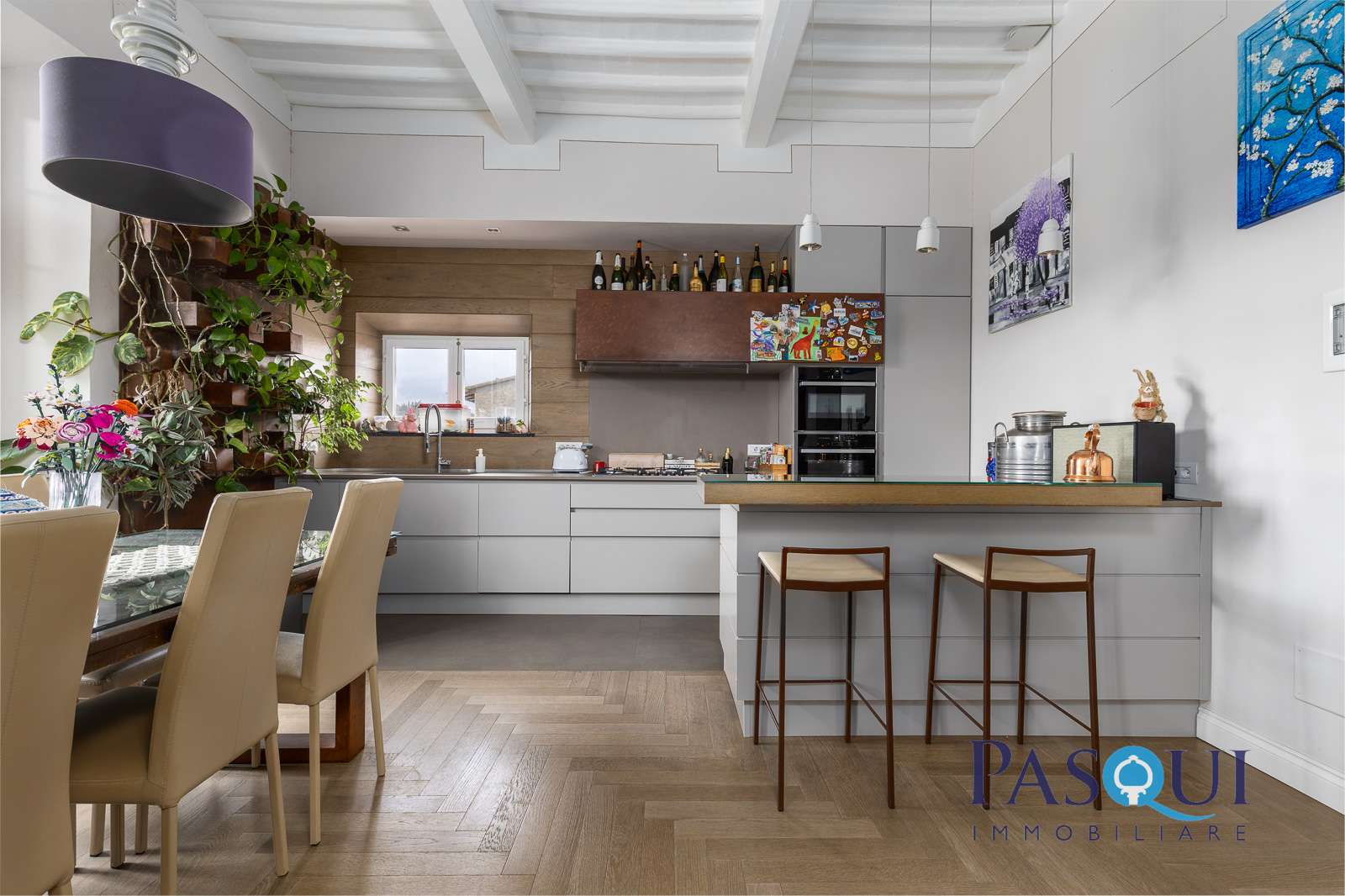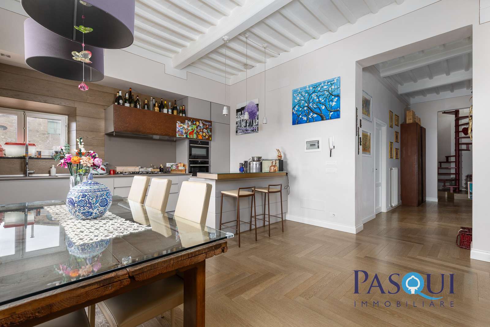 Nelle adiacenze del centro storico di Poggibonsi, zona Viale Garibaldi, all'interno di uno storico edificio dei primi del 900, proponiamo in vendita questa signorile abitazione, ristrutturata nel 2019, posta all'ultimo piano servito da ascensore.