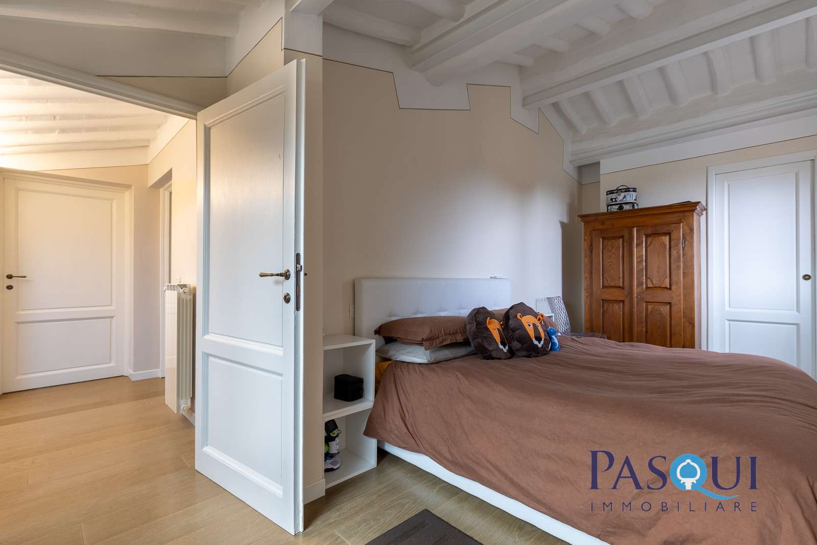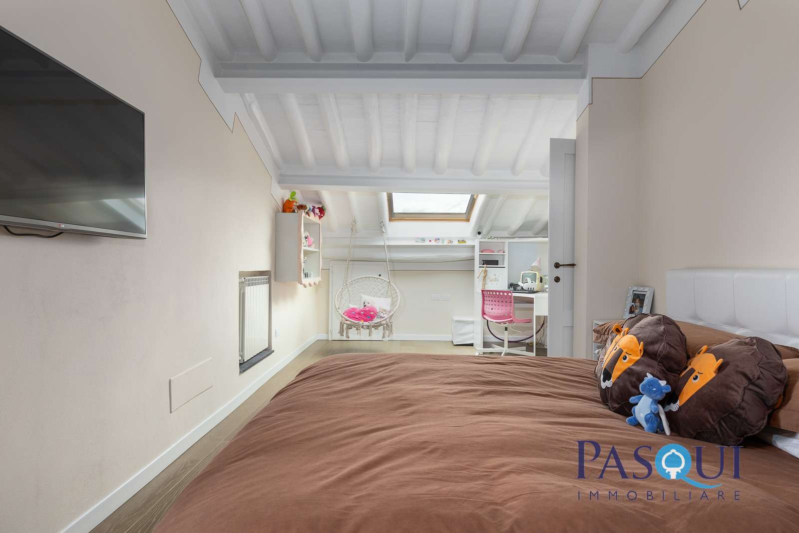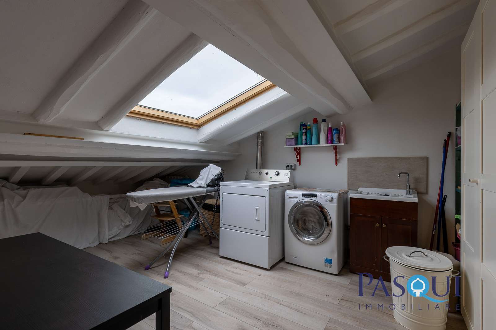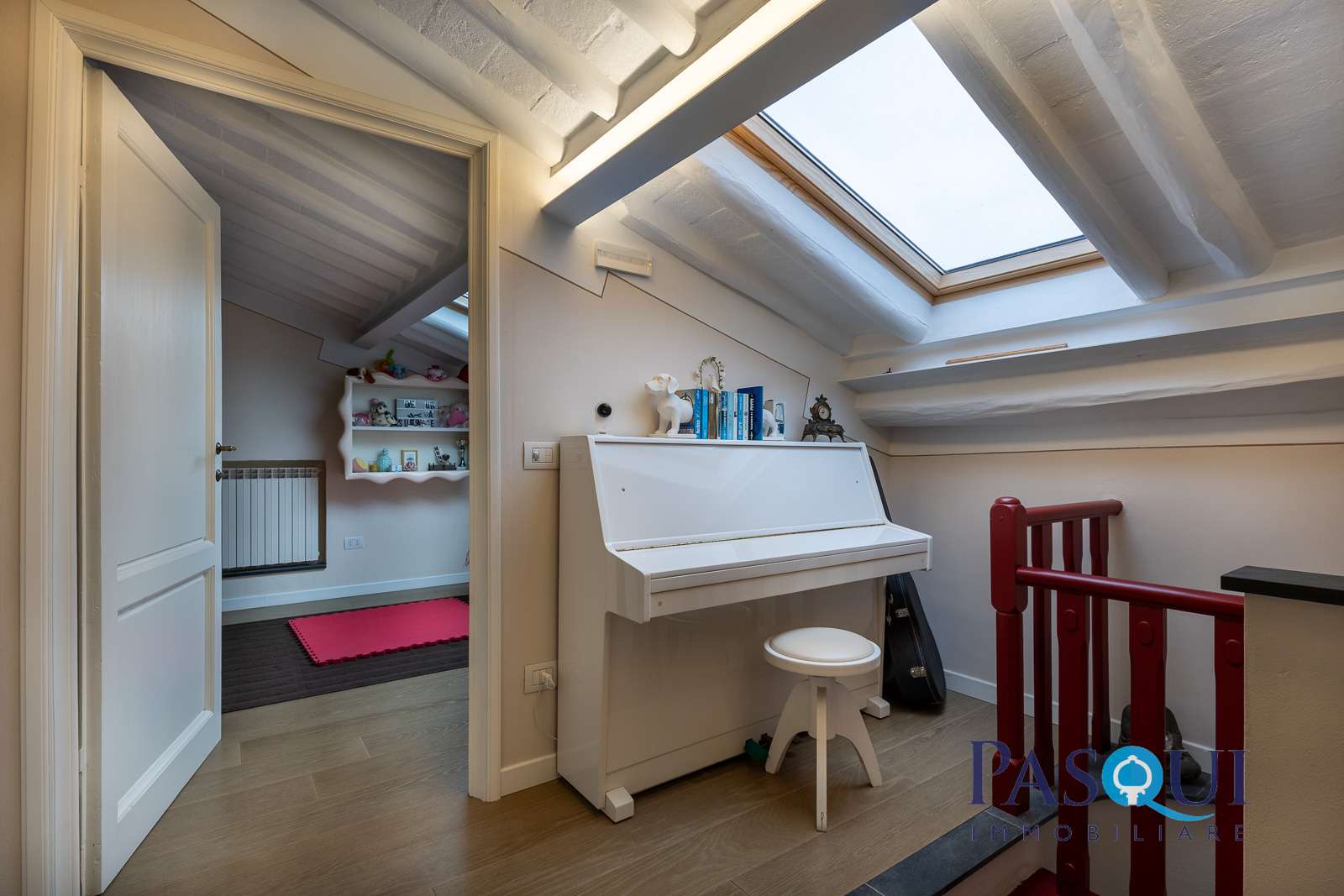 Al piano superiore, avente anche accesso indipendente, troviamo una camera mansardata con bagno privato, uno studio guardaroba, un vano ripostiglio sottotetto ed una comoda zona lavanderia.