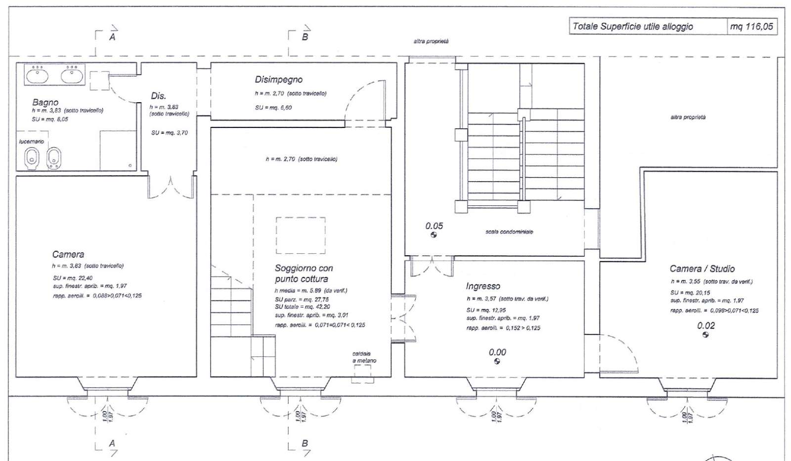 Attualmente ad uso ufficio ma trasformabile in civile abitazione, è possibile la realizzazione di un secondo bagno, di lucernari e di un soppalco.
